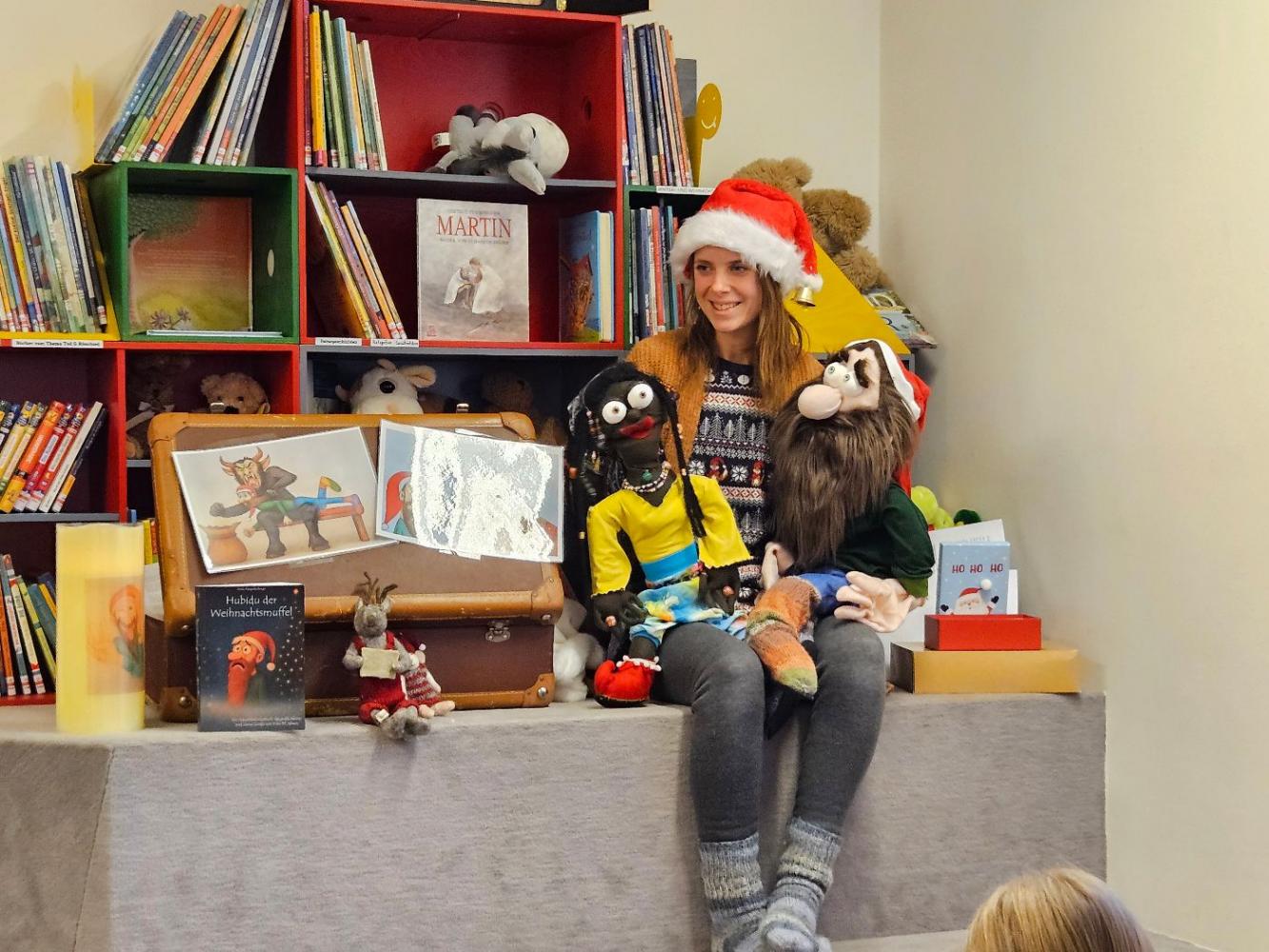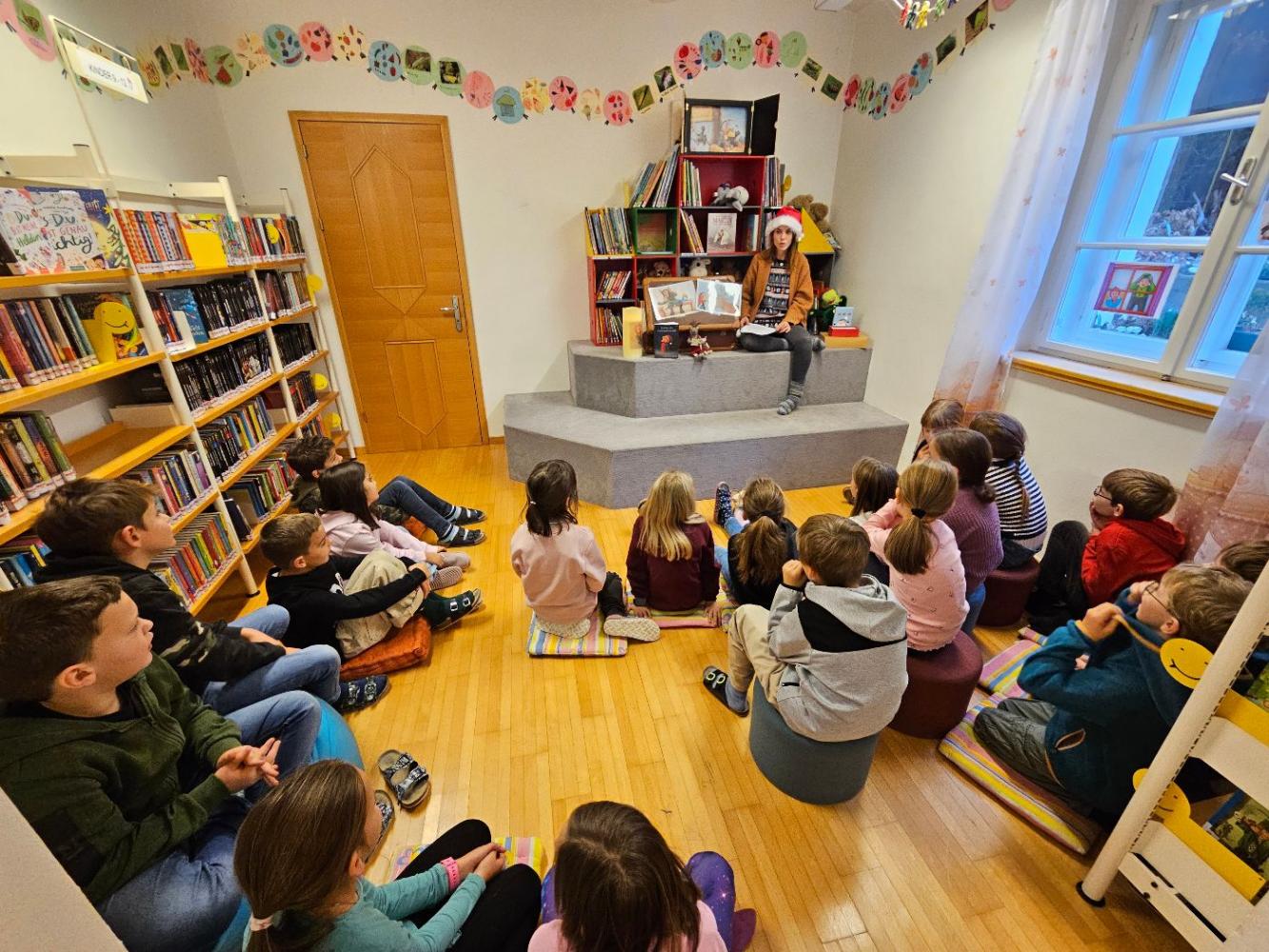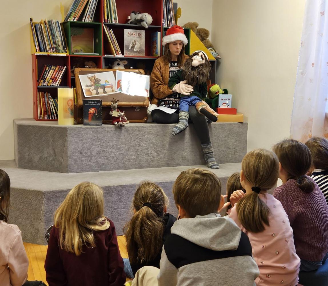 Gespannt lauschte die 3a-Klasse der Erzählung von Autorin Anita Berger und lachte herzhaft über Hubidus Streiche, Ansichten und Abenteuer … was einem Weihnachtsmuffel so alles einfallen kann!