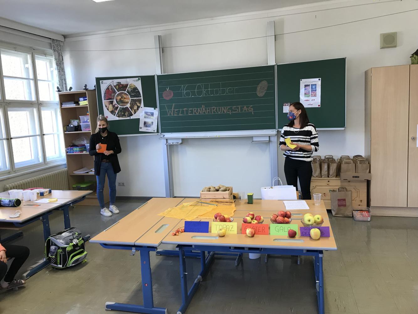 Sie informierten die Kinder über gesunde und regionale Lebensmittel, im Besonderen über Kartoffeln und Äpfel.