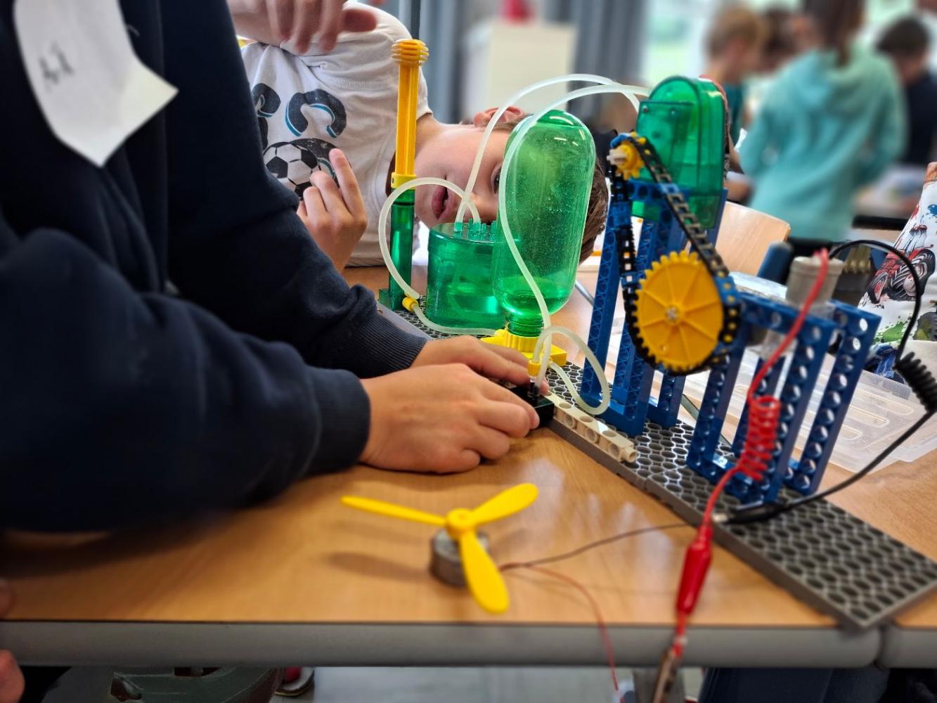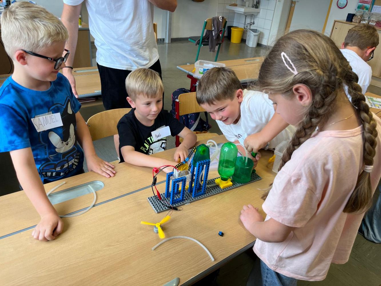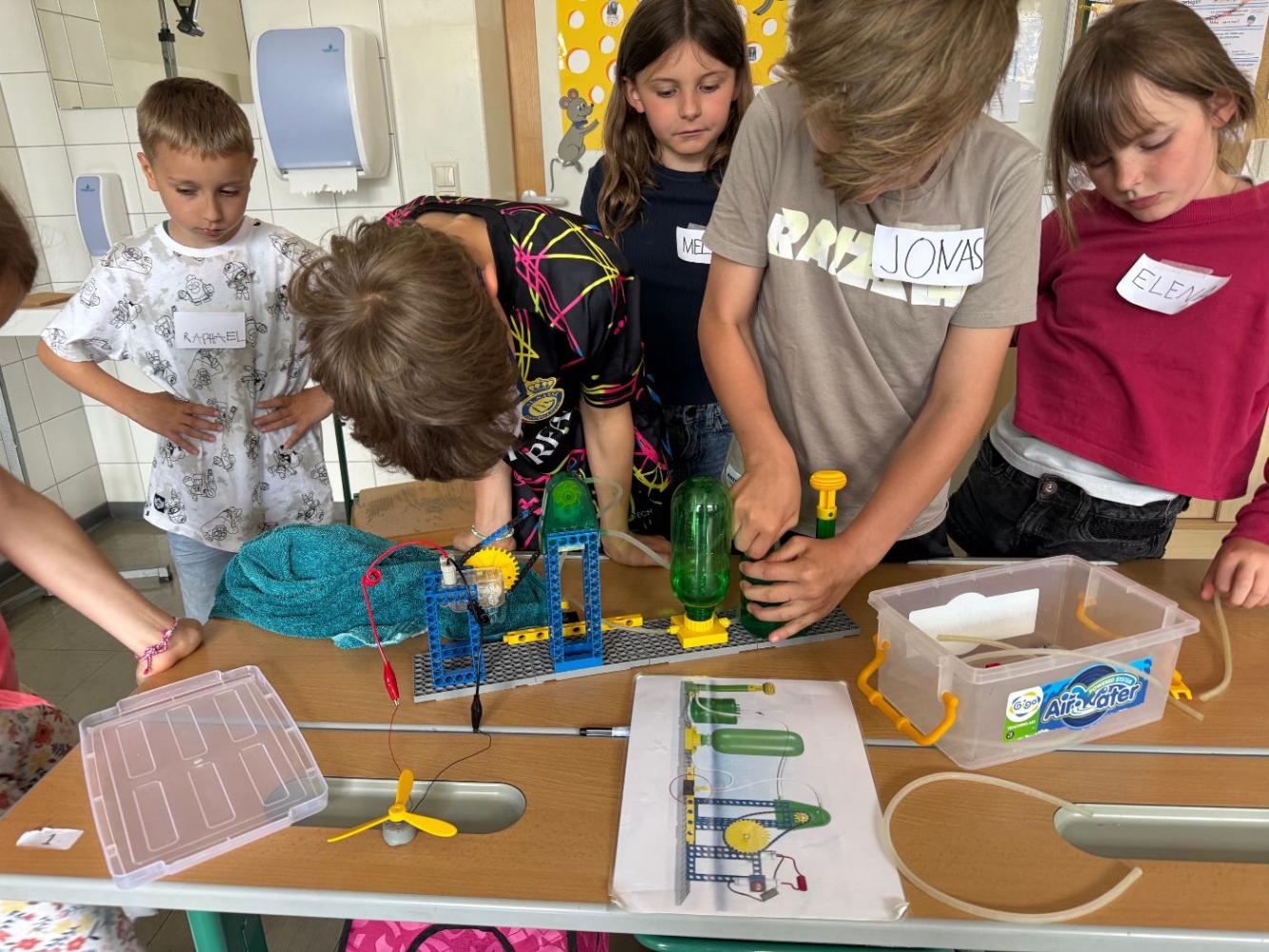 Am spannendsten war für alle das Nachbauen eines kleinen Kraftwerkes - groß war die Freude, als sich der Propeller mithilfe des erzeugten Stromes drehte.