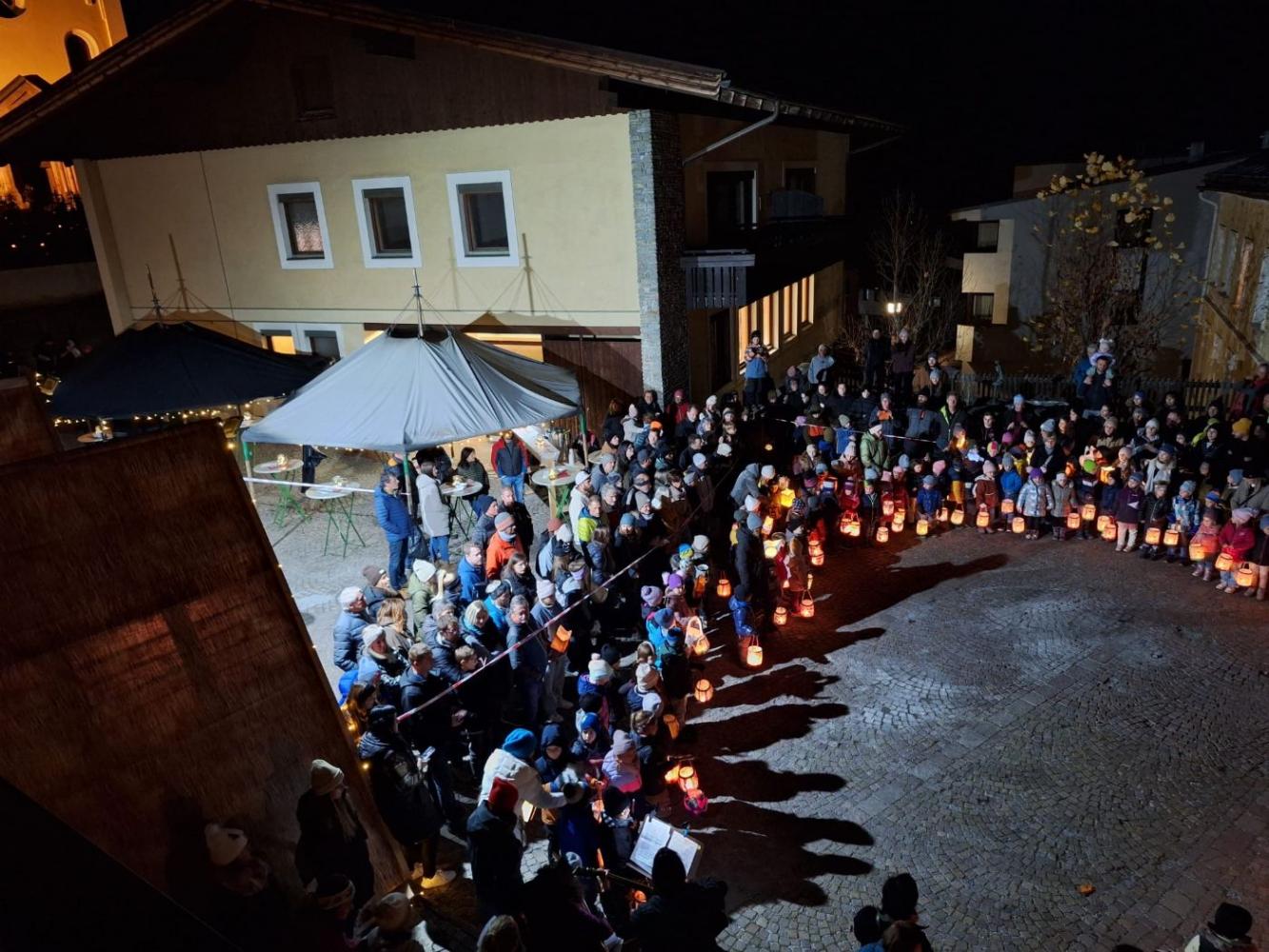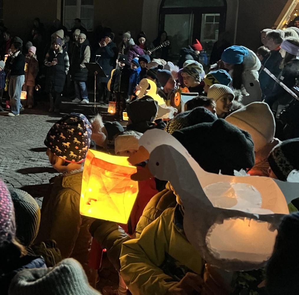 Nach den musikalischen Darbietungen der Kindergartenkinder und SchülerInnen zogen alle, angeführt vom Hl. Martin auf dem Pferd, mit ihren bunten Laternen durch das Dorf.