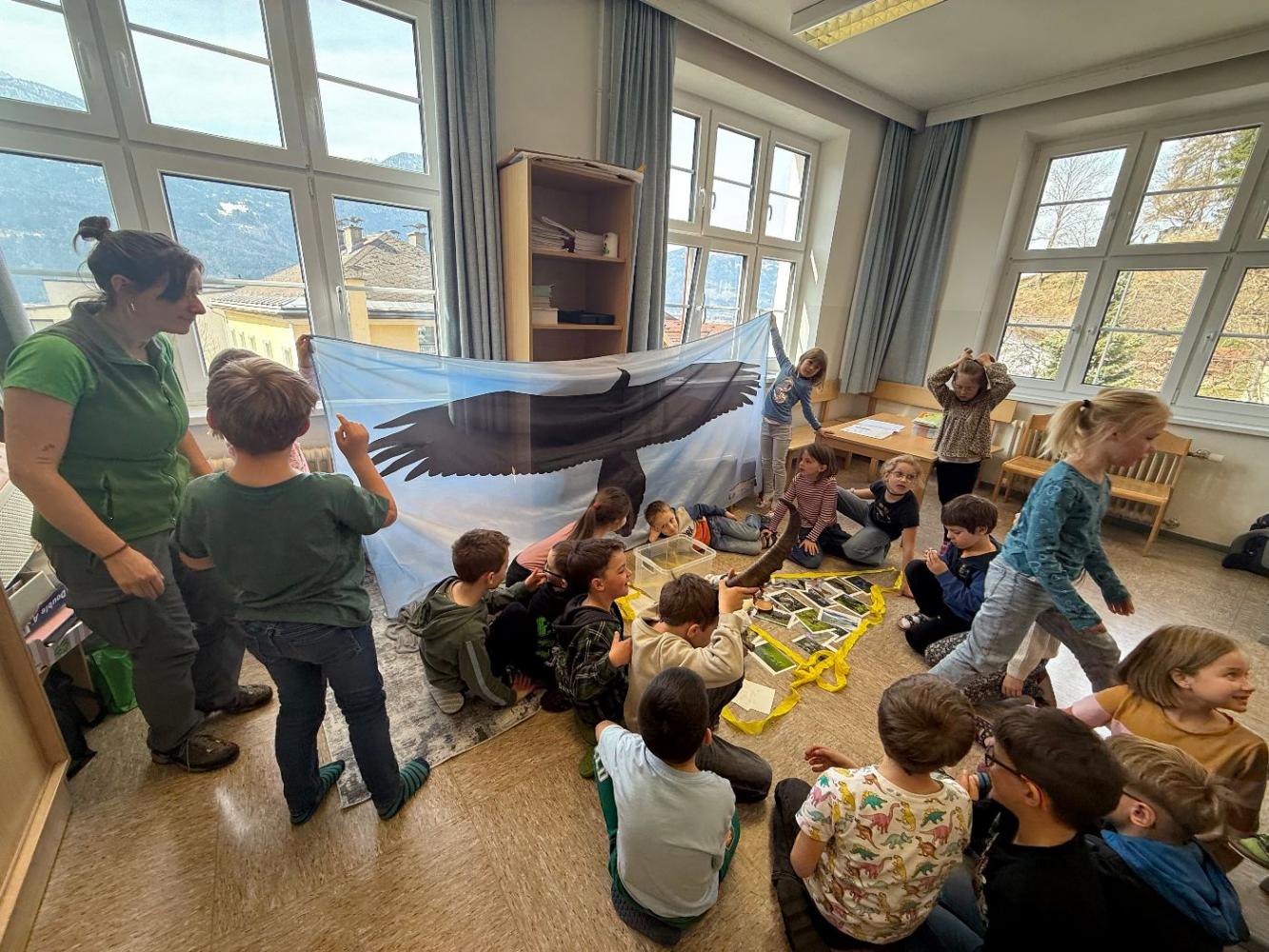 Am 25. März fand an unserer Volksschule die Einführungseinheit der Nationalparkschule Hohe Tauern statt. Die Kinder staunten über die beeindruckende Vielfalt der Tier- und Pflanzenwelt und erfuhren, wie wichtig der Schutz unserer Natur ist. Besonders spannend war das Entdecken der mitgebrachten Anschauungsobjekte: vom Schädel eines Eichhörnchens und eines Murmeltiers über ein ausgestopftes Schneehühnchen und Hermelin bis hin zu den Hörnern von Gämse und Steinbock sowie dem Geweih eines Rehbockes. Ein echtes Highlight war die große Flügelspannweite des Bartgeiers, die die Kinder besonders faszinierte. Abgerundet wurde die lehrreiche Einheit durch eine kreative Bastelarbeit.
