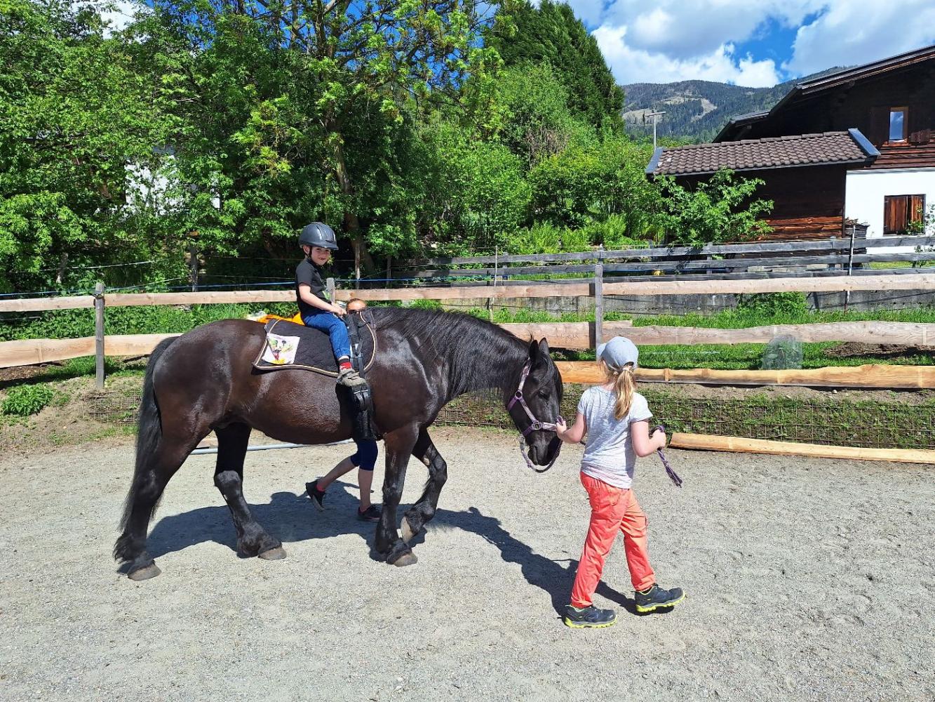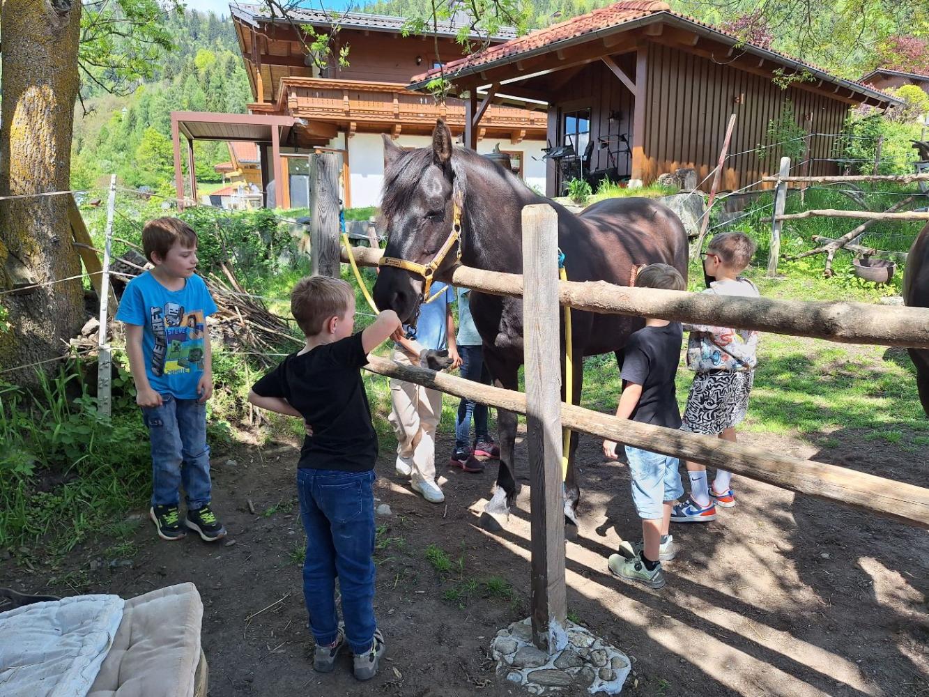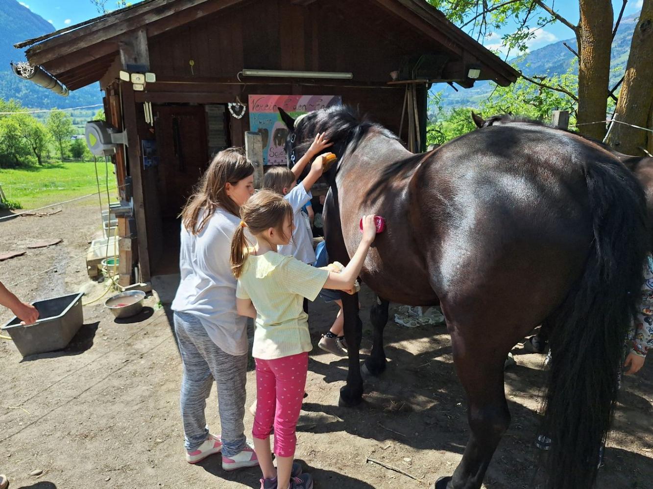 Von Montag bis Freitag wird an unserer Schule die schulische Tagesbetreuung angeboten. Unsere Freizeitbetreuerin Heike Zojer sorgt immer für ein abwechslungsreiches Programm: ob kleinere oder größere Wanderungen, kreatives Gestalten mit verschiedensten Materialien und zu den Jahreszeiten passend, ob Bewegung im Turnsaal und am Schulgelände oder ob besondere Erlebnisse, wie ein Nachmittag bei den Pferden oder ein gemütliches Grillen beim Pfadi-Heim -- Langeweile kommt in der Tagesbetreuung selten auf.