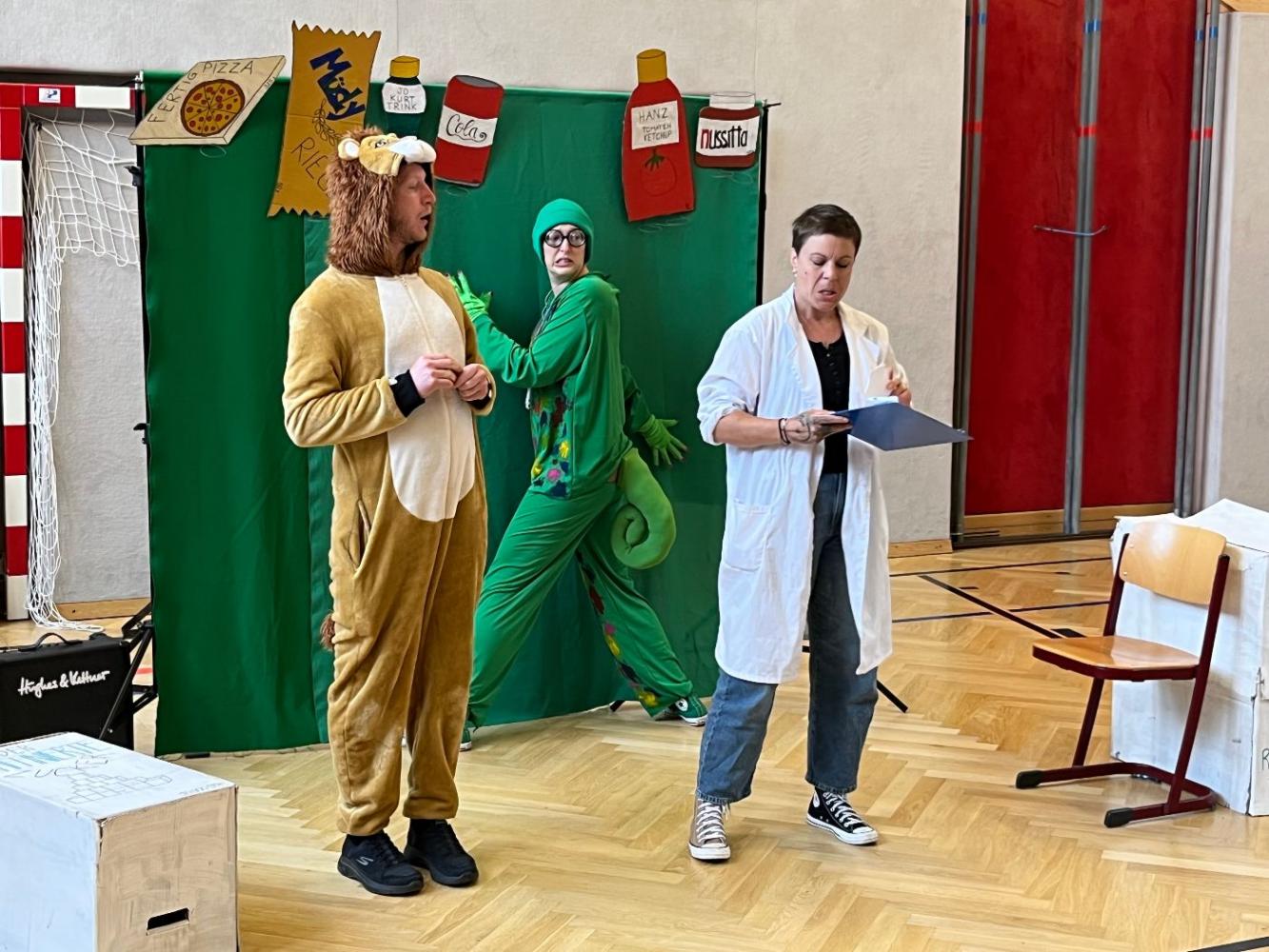 Am Donnerstag, den 12. Juni 2025, führte eine Theatergruppe vom Tiroler Kulturservice im Turnsaal für alle Klassen das Theaterstück „Der raffinierte Zucker“ auf.