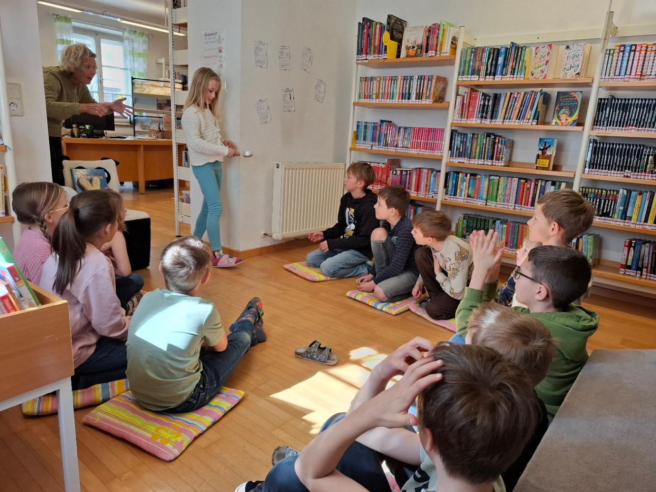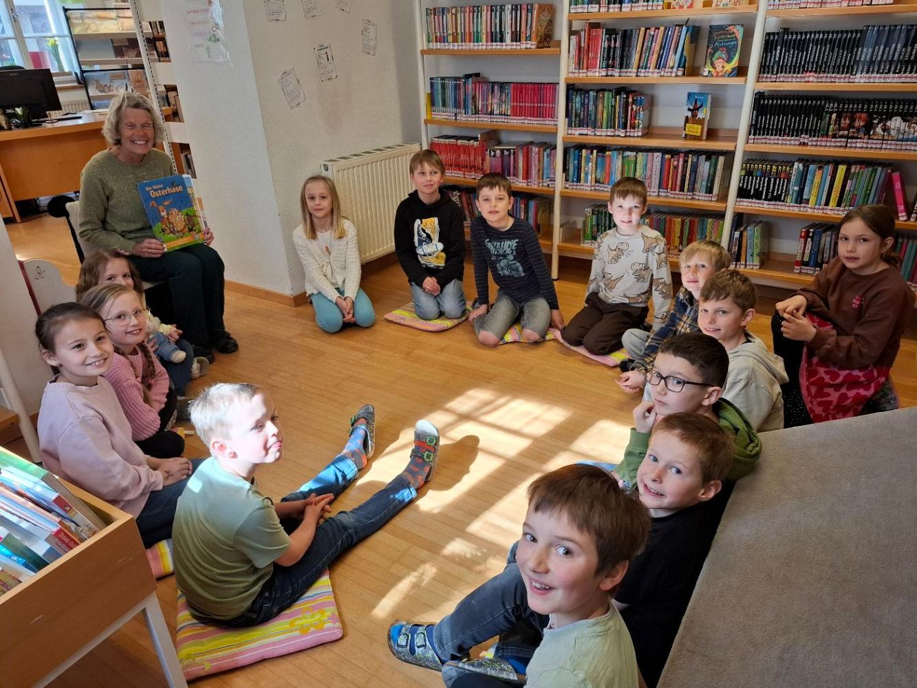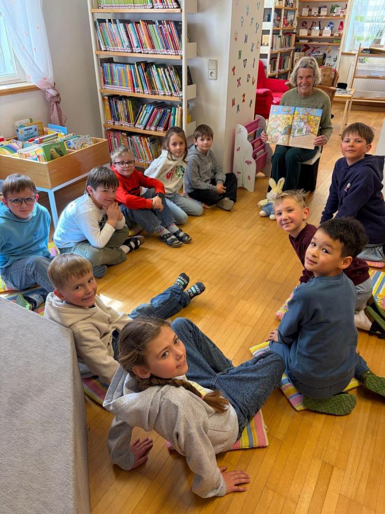Die Kinder der 2a- und 2b- Klasse besuchten im Rahmen des Österreichischen Vorlesetages am 26. März die Bücherei Dölsach, wo ihnen Büchereimitarbeiterin Maria Halbfurter eine spannende Ostergeschichte vorlas und danach zu einem Eierlauf-Spiel einlud.